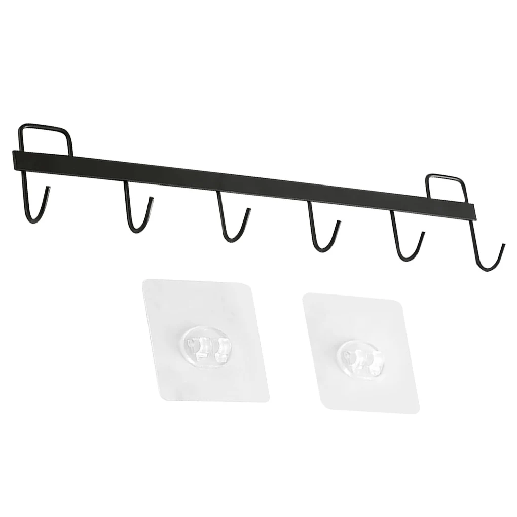 - 6 Hooks Rack Rail Wall Mounted Coat Hat Hanger Entryway Kitchen Utensil Towel Clothing Hanging Stand Multifunctional Door Hook