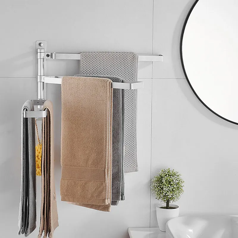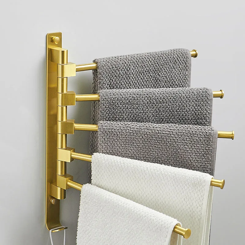 8. Gold Wood Towel Bar Aluminum alloy Swivel Towel Hanger Wall Mounted Folding Bathroom Towel Rail Rack Bathroom Towel Holder