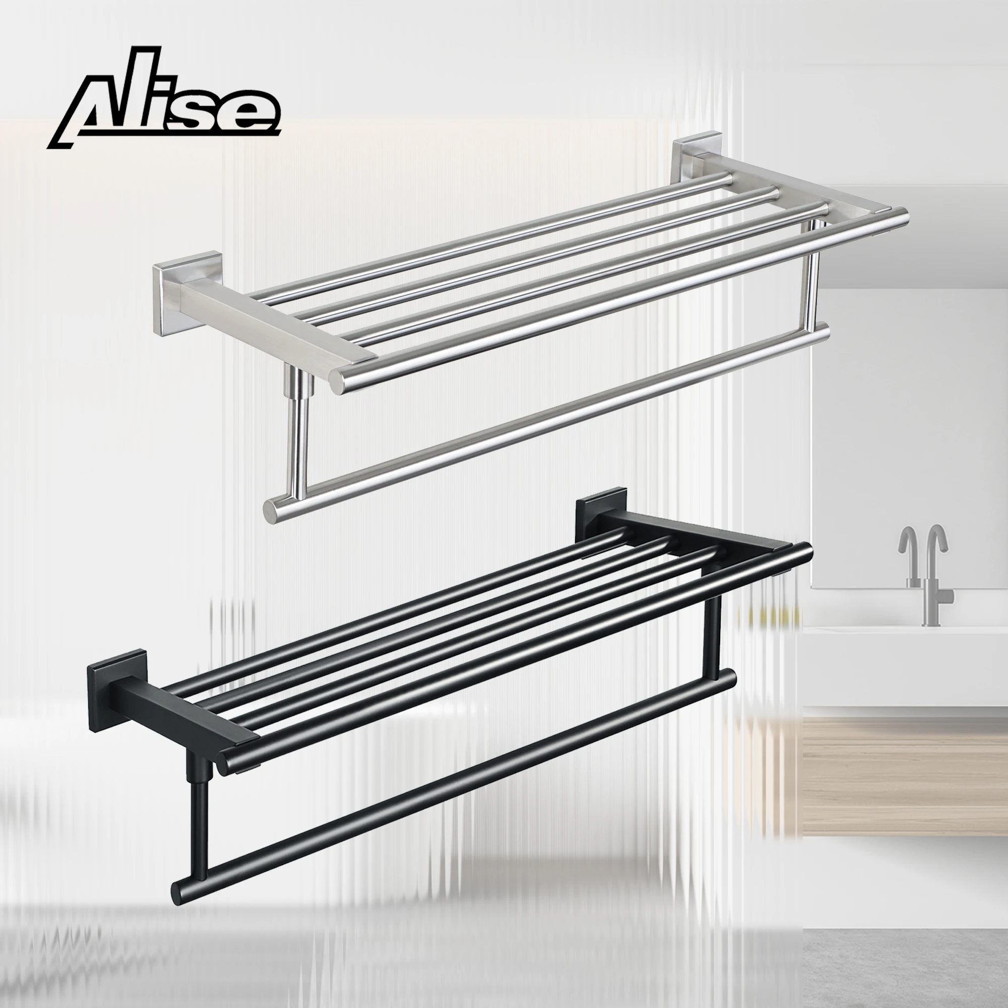 11. Doppio portasciugamani mensola portasciugamani da bagno quadrata in alluminio grigio a parete per mensola da bagno